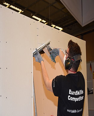 Die Wettbewerbsteilnehmer der Stuckateure hatten eine Aufgabe, die aus vier Modulen bestand und in 18 Zeitstunden an drei Wettbewerbstagen herzustellen war. Für das erste Modul musste eine Trockenbaukonstruktion mit verschiedenen Öffnungen hergestellt werden. Modul zwei umfasste das Verspachteln der Trockenbaukonstruktion. Im dritten Modul (Stuck) mussten Stuckprofile hergestellt und präzise an verschiedenen Öffnungen versetzt werden. Bei Modul vier, dem “Free Style Modul”, konnten die Teilnehmer ihrer Kreativität freien Lauf lassen. Der deutsche Stuckateur David Reingen fertigte einen Flaggenmast aus einem selbstgezogenen Stuckprofil. Die schwedische Flagge stellte er aus Stuckteilen her, die dann entsprechend blau und gelb eingefärbt wurden.