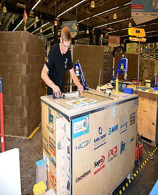 Goldmedaillen-Gewinner Fliesenleger Tim Welberg (21) im Wettbewerb