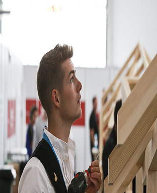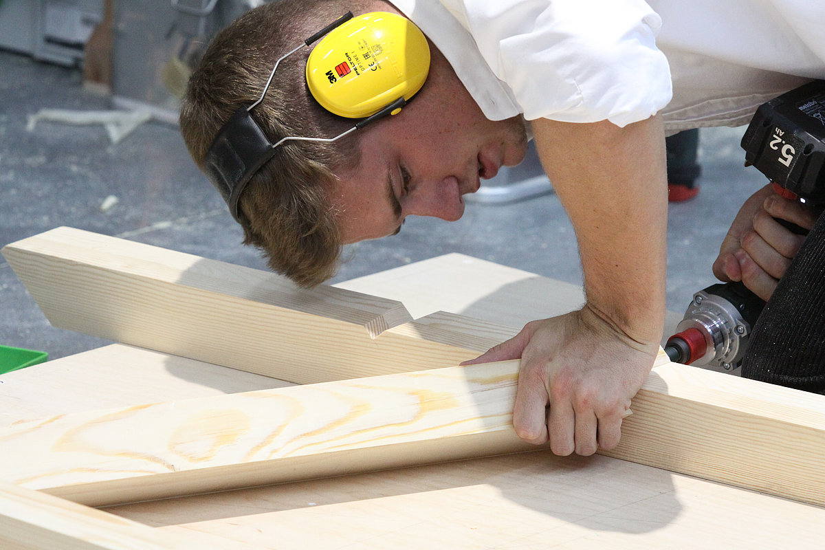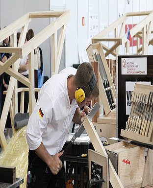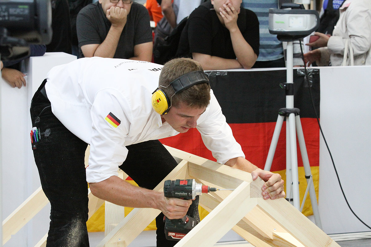Alexander Bruns (22) aus Bad Dürkheim in Rheinland-Pfalz wurde im Wettbewerb der Zimmerer Weltmeister und holte ebenfalls Gold.