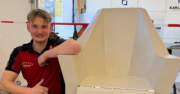 „Über die gesamte Saison war es ein harter Zweikampf mit Luis“, meint WM-Teilnehmer Niko Schleicher, „umso glücklicher bin ich über meine Qualifikation.“ Jetzt werde er sich gezielt auf die Weltmeisterschaft im Herbst vorbereiten, „mit vielen Trainings, dann möchte ich in China weit kommen und Gold für Deutschland holen“. Alle vier Mitglieder der Fliesen-Nationalmannschaft mussten innerhalb von 22 Stunden einen Sessel aus Fliesen gestalten, dazu den Rohkörper aus KERDI-Boardplatten erstellen und eine DITRA-Heat-Heizung einarbeiten, die die Sitz- und Lehnfläche erwärmt. „Diese Aufgabenstellung war komplett neu und überaus komplex“, erklärt Teammanager und Bundestrainer Andreas Beyer. „Daher war es wenig überraschend, dass jedes Teammitglied Startschweirigkeiten hatte. Aber diese Anfangsprobleme haben alle gut lösen können.“