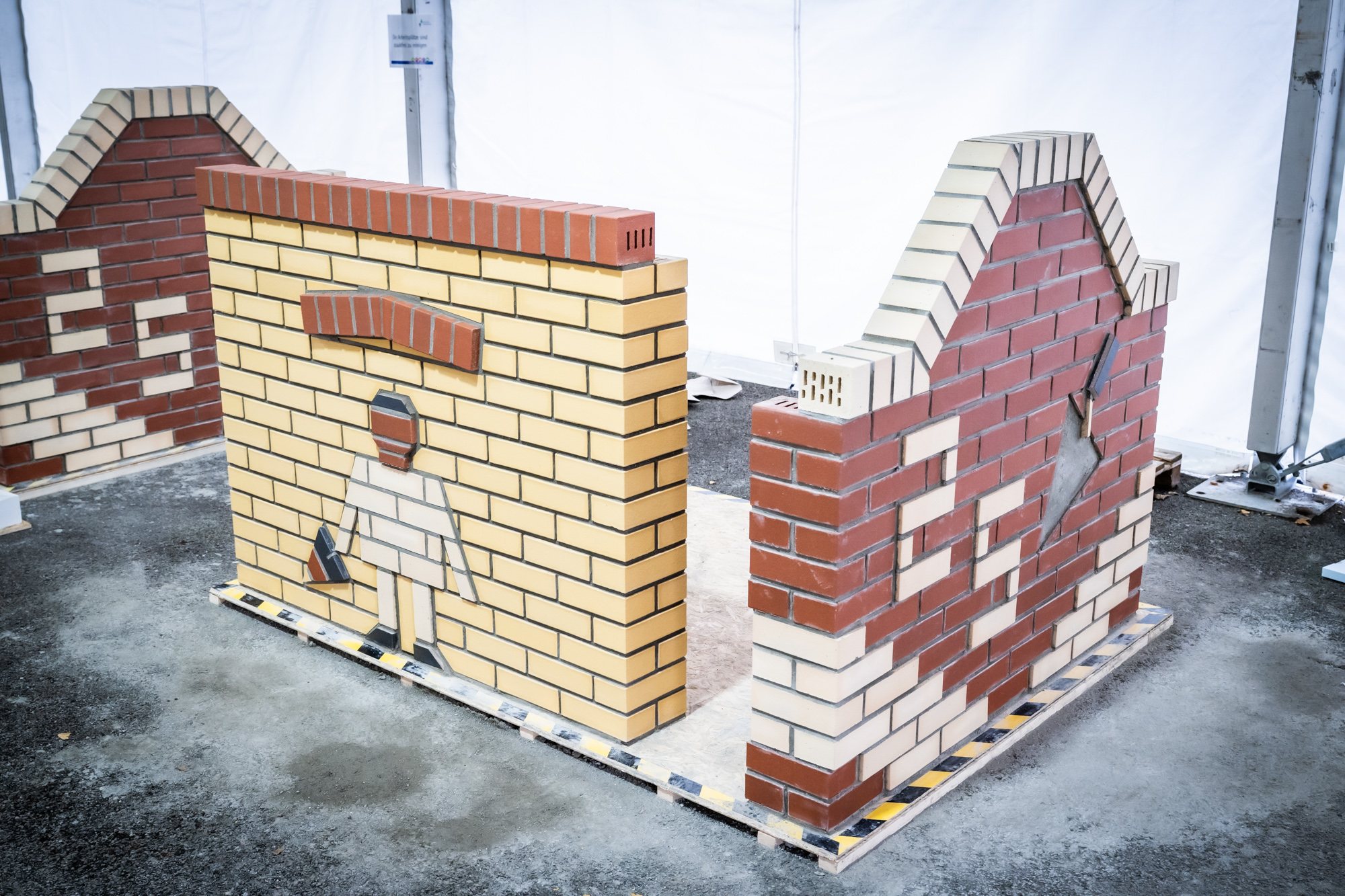 Es mussten zwei Module gefliest werden, beide waren Klinker-Mauerwerk mit Vormauer-Mörtel, circa 1,50 Meter hoch und 1,70 Meter breit. Im Modul eins, dessen Oberkante zwei Schrägen aufwies, mussten im Mauerwerk die Jahreszahl 25 und eine Maurerkelle passgenau eingesetzt werden. Modul 2 hatte die Besonderheit, dass eine kleine Maurerfigur samt zwei schräger Steinlinien darüber gefordert waren.